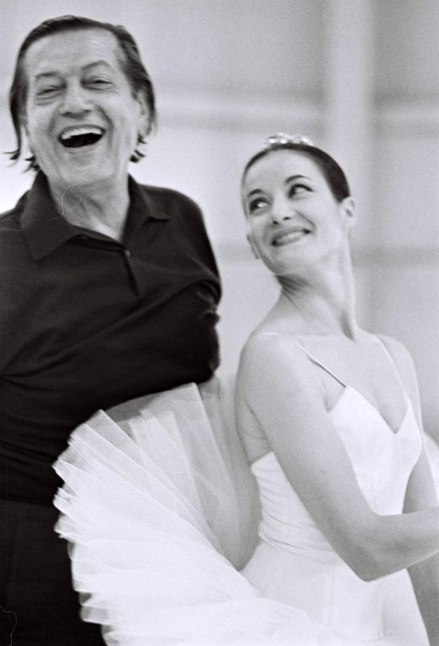 Serge LIFAR en répétition avec Noëlla PONTOIS danseuse étoile de l'Opéra de Paris Photo pour le magazine Le Point à l’Opéra Garnier - Paris le 30/03/1977