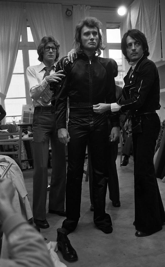Essayage de ses costumes de scène, crées par Y. Saint-Laurent pour son concert au