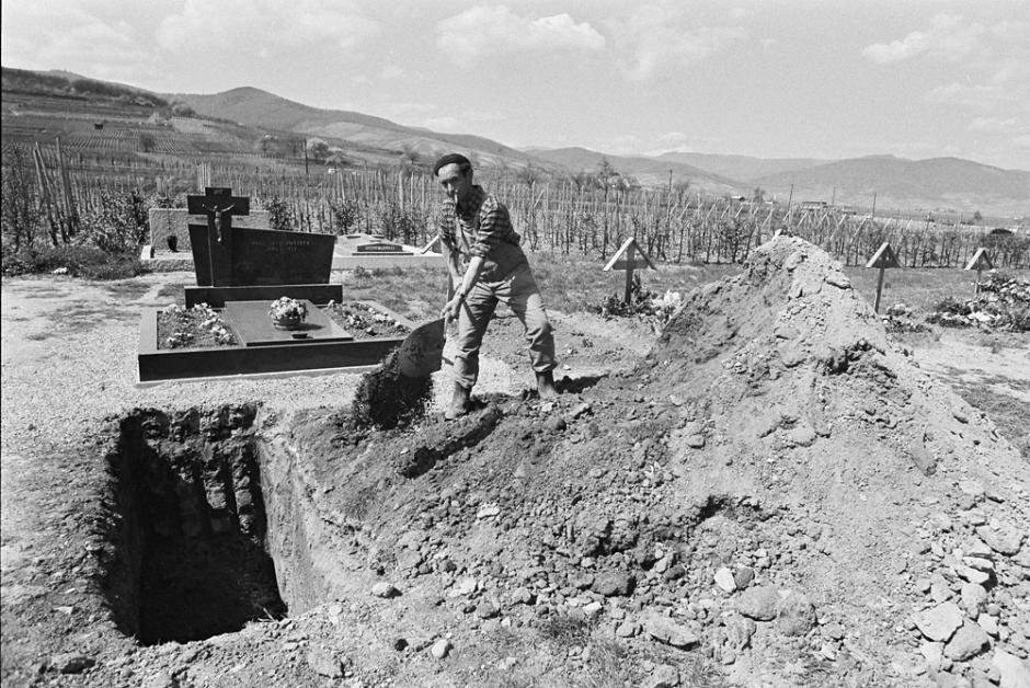 Cimetière en chantier sur la route des vins, entre Colmar et Mulhouse (Alsace)