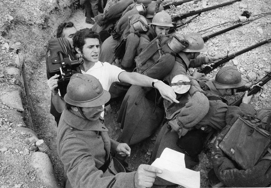 Claude Lelouch en action caméra à l’épaule dans les tranchées avec les figurants soldats de la guerre de 1914