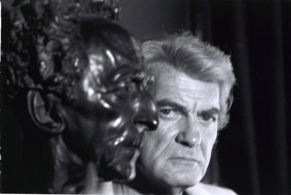 Photo chez lui à côté du buste de Jean Cocteau en 1970